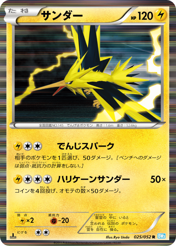 雷雲の 中に いると 言われる 伝説の ポケモン。 雷を 自在に 操る。