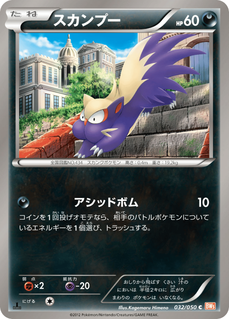 おしりから飛ばす くさい 汁の においは 半径2キロに 広がり まわりの ポケモンは いなくなる。
