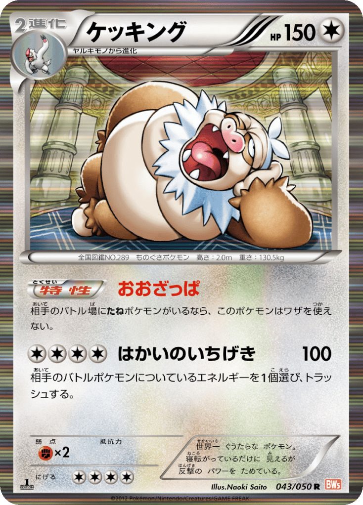 世界一 ぐうたらな ポケモン。 寝転がっているだけに 見えるが 反撃の パワーを ためている。