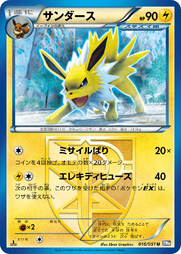 体内に 電気を ためることで 逆立てた 全身の 体毛を ミサイルのように 次々 飛ばす。