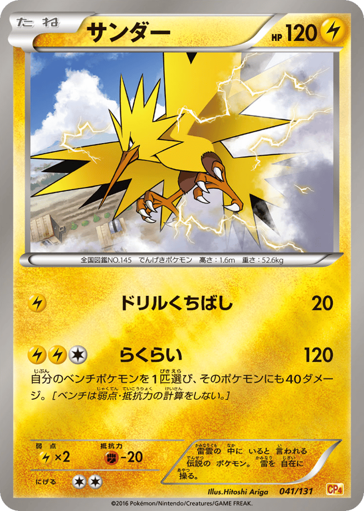 雷雲の 中に いると 言われる 伝説の ポケモン。 雷を 自在に 操る。