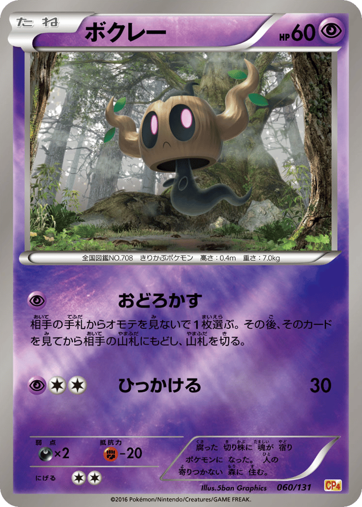 腐った 切り株に 魂が 宿り ポケモンに なった。 人の 寄りつかない 森に 住む。