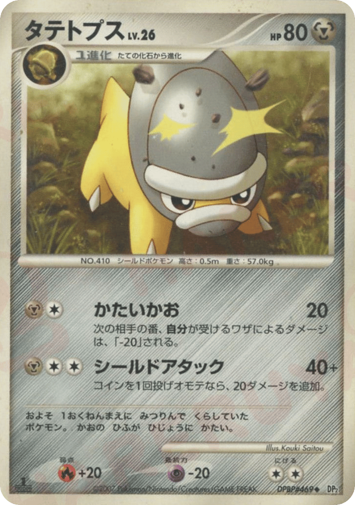 およそ 1おくねんまえに みつりんで くらしていた ポケモン。 かおの ひふが ひじょうに かたい。