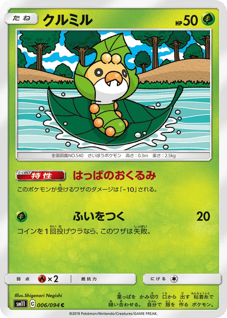 葉っぱを かみ切り 口から 出す 粘着糸で 縫い合わせる。 自分で 服を 作る ポケモン。