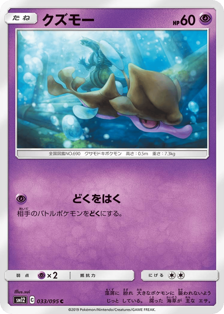 藻屑に 紛れ 大きなポケモンに 襲われないよう じっと している。 腐った 海草が 主な エサ。