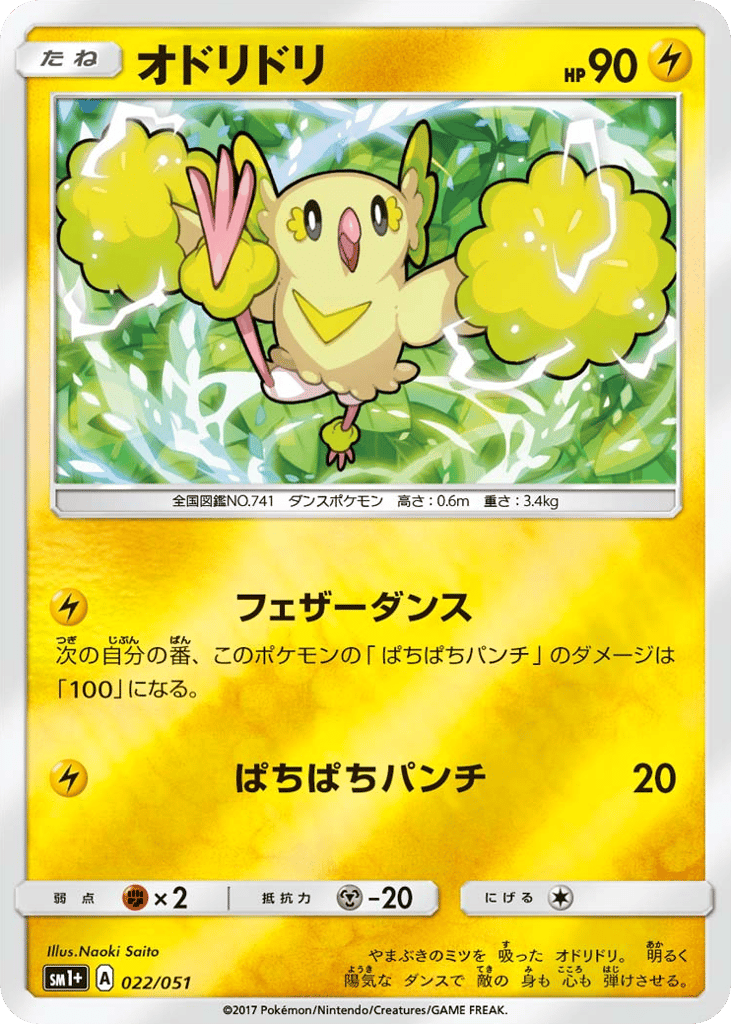 やまぶきのミツを 吸った オドリドリ。 明るく 陽気な ダンスで 敵の 身も 心も 弾けさせる。
