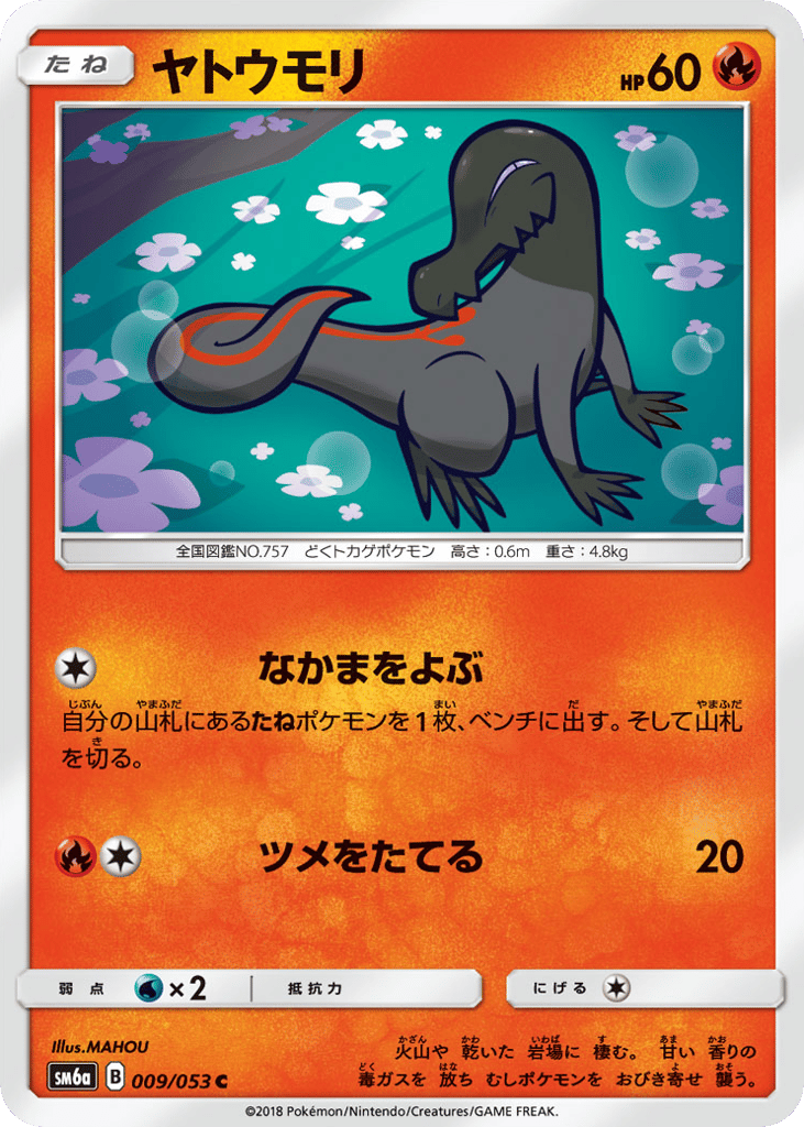 火山や 乾いた 岩場に 棲む。 甘い 香りの 毒ガスを 放ち むしポケモンを おびき寄せ 襲う。