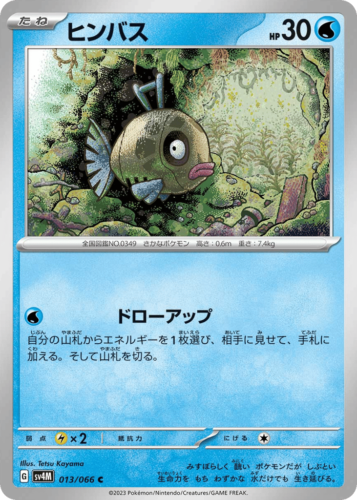 みすぼらしく 醜い ポケモンだが しぶとい 生命力を もち わずかな 水だけでも 生き延びる。