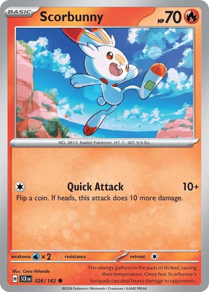 Fire energy gathers in the pads of its feet, raising their temperature. Once hot, Scorbunny's footpads can deal heavy damage to opponents.
