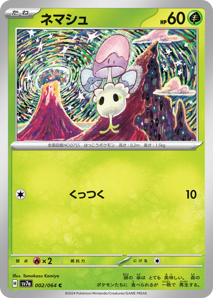 頭の 傘は とても 美味しい。 森の ポケモンたちに 食べられるが 一晩で 再生する。